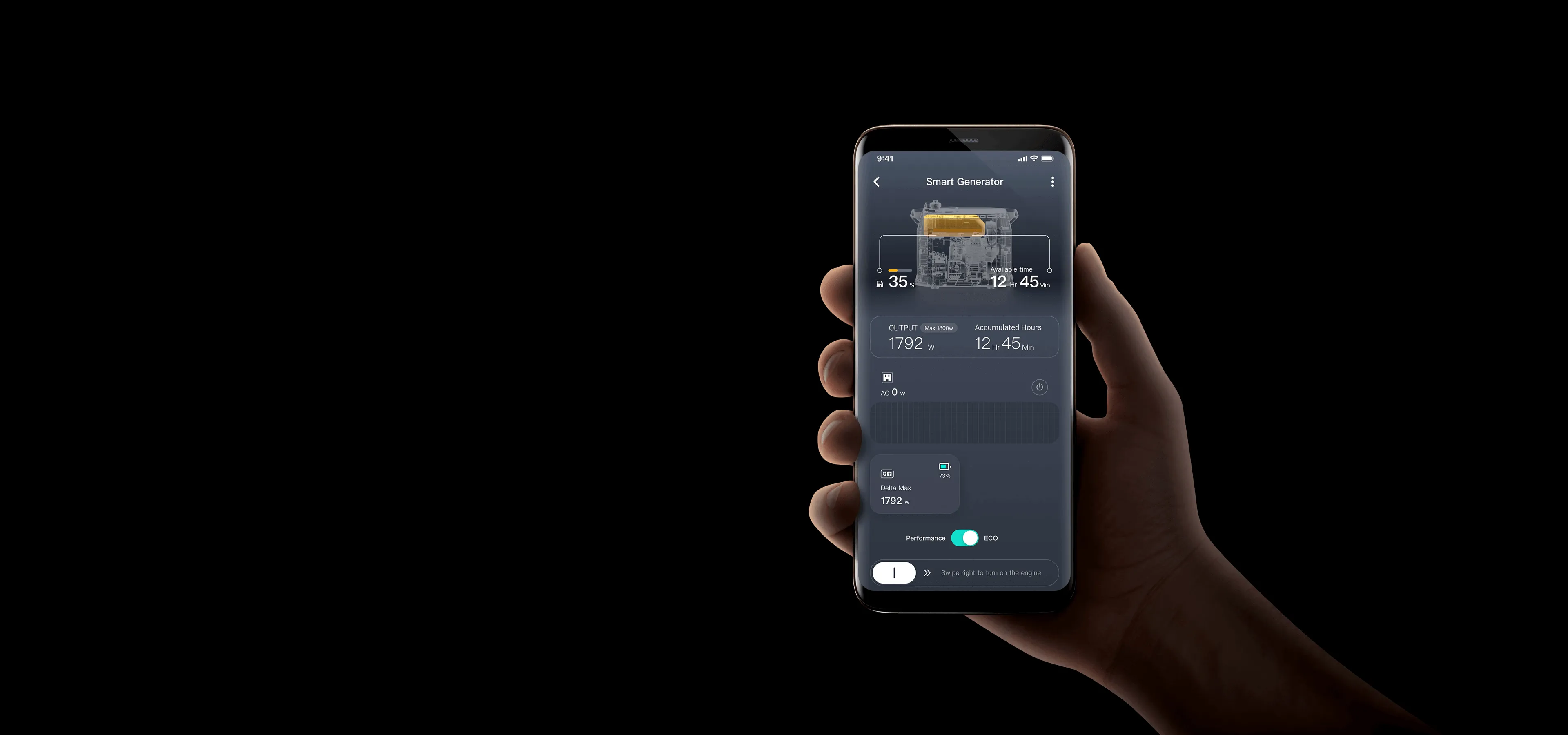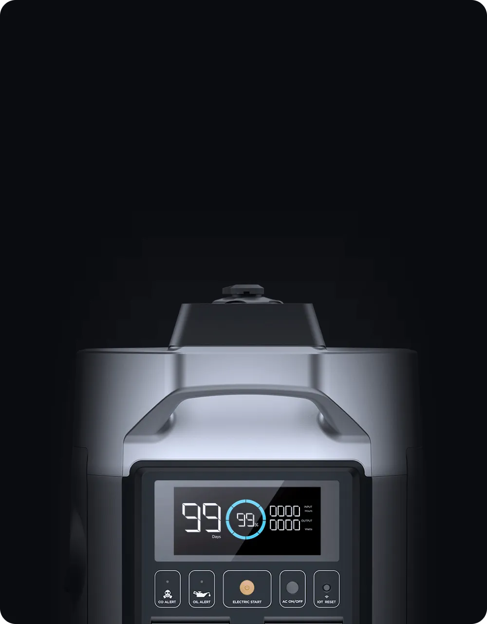 When your DELTA Pro, DELTA Max or Power Kits drops to a predetermined battery level, the Smart Generator automatically kicks in. Once maxed out, the engine shuts down to avoid extra fuel waste, emissions, and noise.